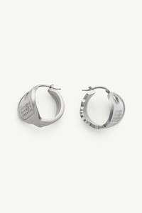 MM6 reinterprets the signature key symbol as a pair of earrings, reshaping a familiar emblem into a piece of sculptural jewelry. With curved edges and a hollowed cut-out, the design blurs the line between object and ornament, transforming functionality into adornment. Product Details Item ID SM6VG0112P7105952 Body: 100% brass Contrast: 100% silver One size Hoop earrings in polished brass and silver Pair Engraved number detail on pendant Engraved brand logo Avoid salt, chlorine water and aggressive liquid Made in Italy