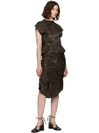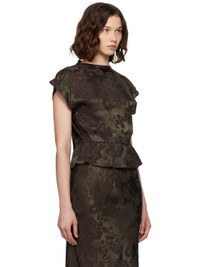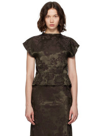 Viscose-blend brocade and crepe blouse. · Jacquard floral pattern throughout · Round neck · Gathering at peplum hem · Cap sleeves · White stitching at back collar · Self-tie fastening at back Supplier color: Khaki burgundy/Black Body 1: 58% acetate, 42% viscose. Body 2: 100% polyester. Made in Italy 252188F107001