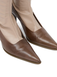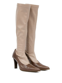 knee-high leather boots Highlights - Beige and brown - Pointed toe - Tapered heel - Elasticated upper - Sleek silhouette Made in Italy Composition Lining: Leather 100% Sole: Calf Leather 100% Outer: Calf Leather 100%