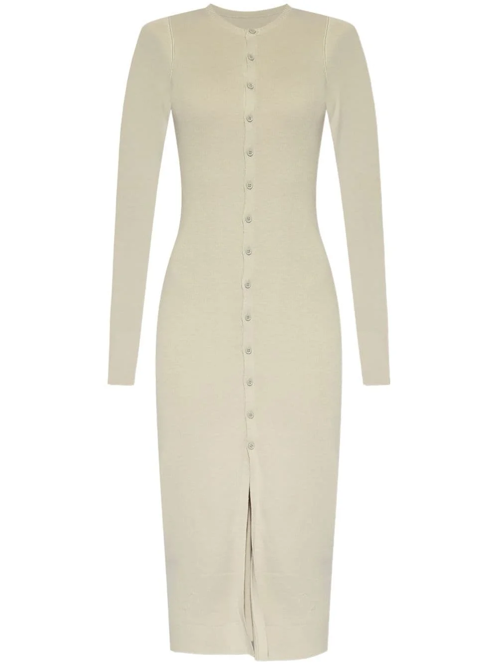 knitted midi dress Highlights - Ecru - Cotton blend - Knitted construction - Round neck - Front button fastening - Long sleeves - Front slit - Mid-length - Straight hem Imported Composition Cotton 70%, Polyamide 30%