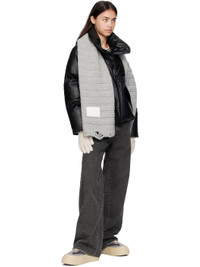 Rectangular 5-gauge knit virgin wool-blend scarf. · Logo patch at face · Raw edge at ends · L66" x W16" Supplier color: Light grey melange 50% virgin wool, 50% acrylic. Made in Romania 252188F028004