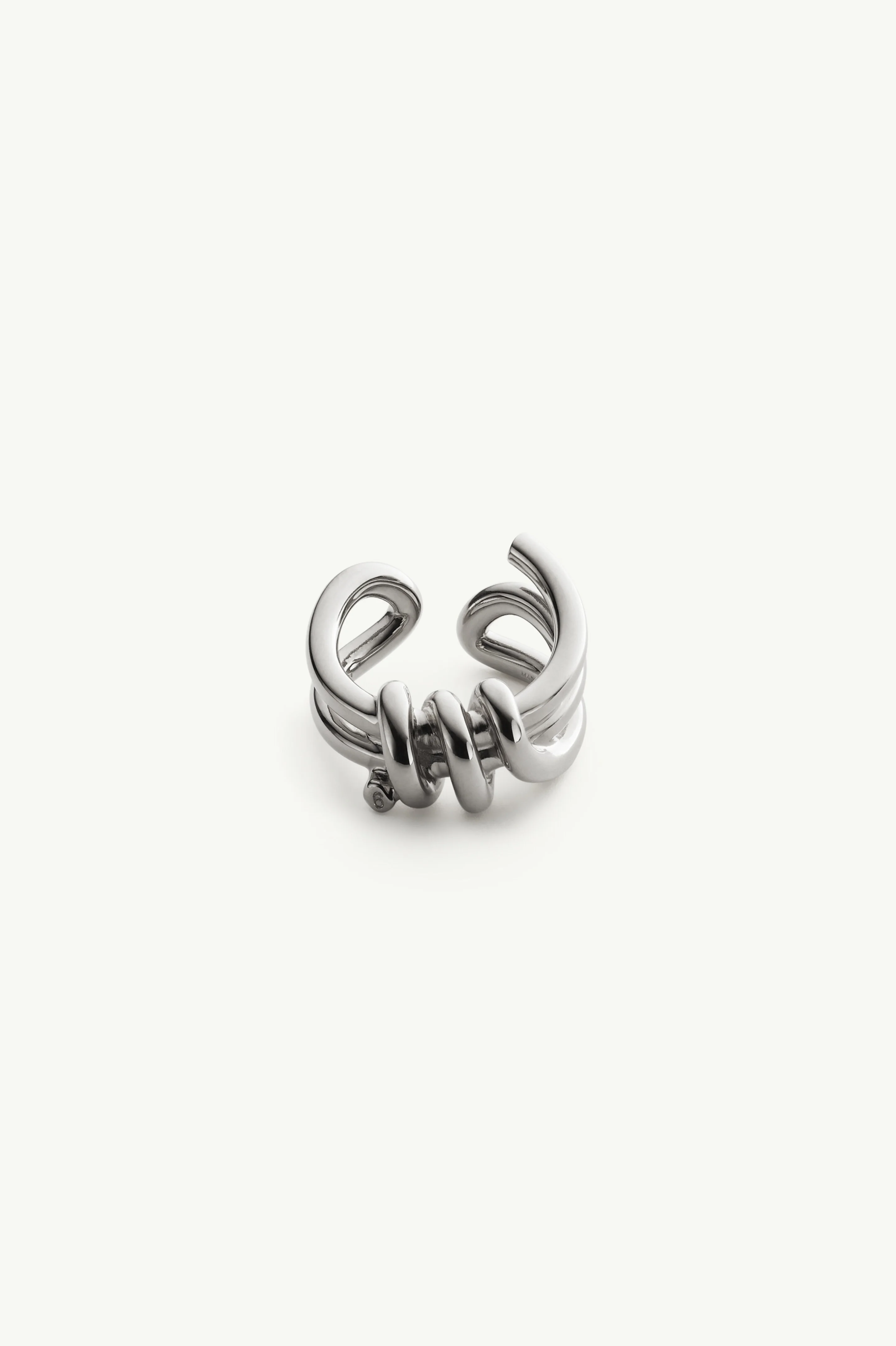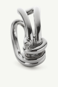 A shoelace reimagined as sculpture. The Knotted Ring translates the everyday tie into a polished gold-tone band, reshaped into loops that echo the gesture of fastening. Product Details Item ID SM6UQ0112P8858951 Composition: 100% brass One size Brass ring with knot detail Polished tubular structure Engraved brand logo Avoid salt, chlorine water and aggressive liquid Made in Italy