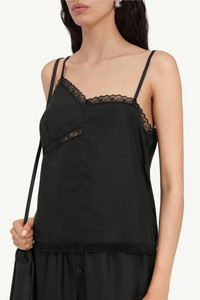This light silk top features an asymmetric neckline and adjustable spaghetti straps, embodying MM6’s avant-garde spirit with a 90° twist. Lace details add a subtle touch of refinement, while the white stitch line at the back underscores the Maison’s signature approach to contemporary design. Product Details Item ID S52NC0344M35244900 Primary fabric: 100% silk Light silk top 90 degree twist illusion Asymetric neck Adjustable spaghetti straps Lace details White stitch line at the back Made in Italy