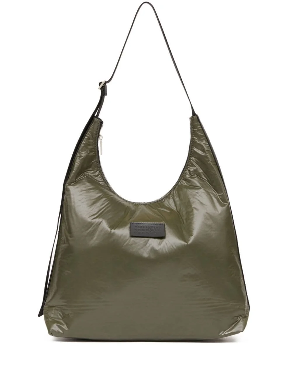large padded lightweight numbers patch shoulder bag Highlights - Olive green/coffee brown - Padded design - Lightweight construction - Logo patch to the front - Adjustable shoulder strap - Top zip fastening - Silver-tone hardware Imported Composition Outer: Polyethylene 100% SIZE & FIT Measurement STRAP 23.62 in(60 cm) DEPTH 5.11 in(13 cm) WIDTH 14.56 in(37 cm) HEIGHT 16.92 in(43 cm)