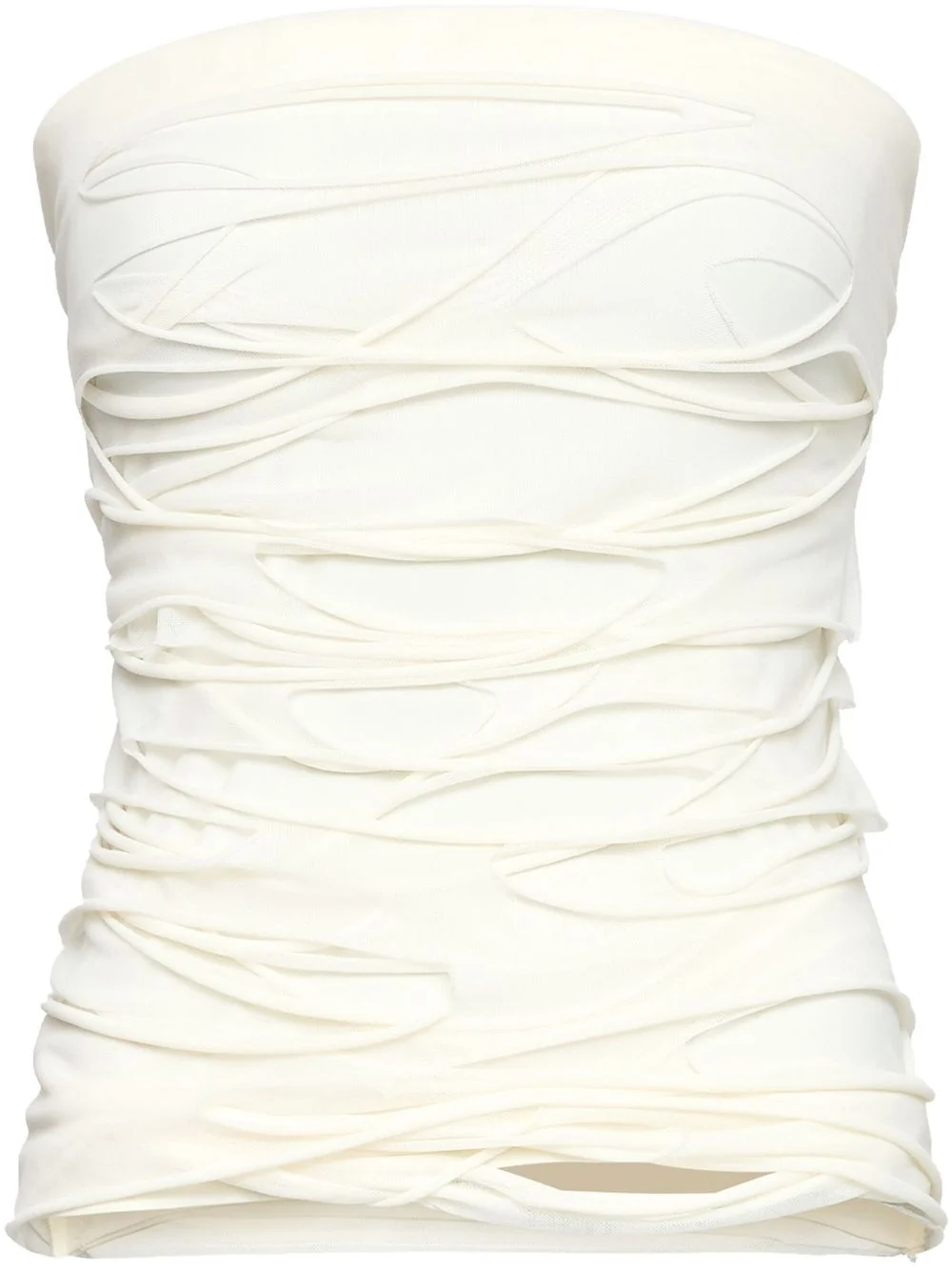 layered top Highlights - White - Draped detailing - Cut-out detailing - Strapless - Sleeveless Made in Italy Composition Polyamide 92%, Spandex/Elastane 8% Washing instructions Read Manufacturer Guidelines