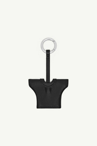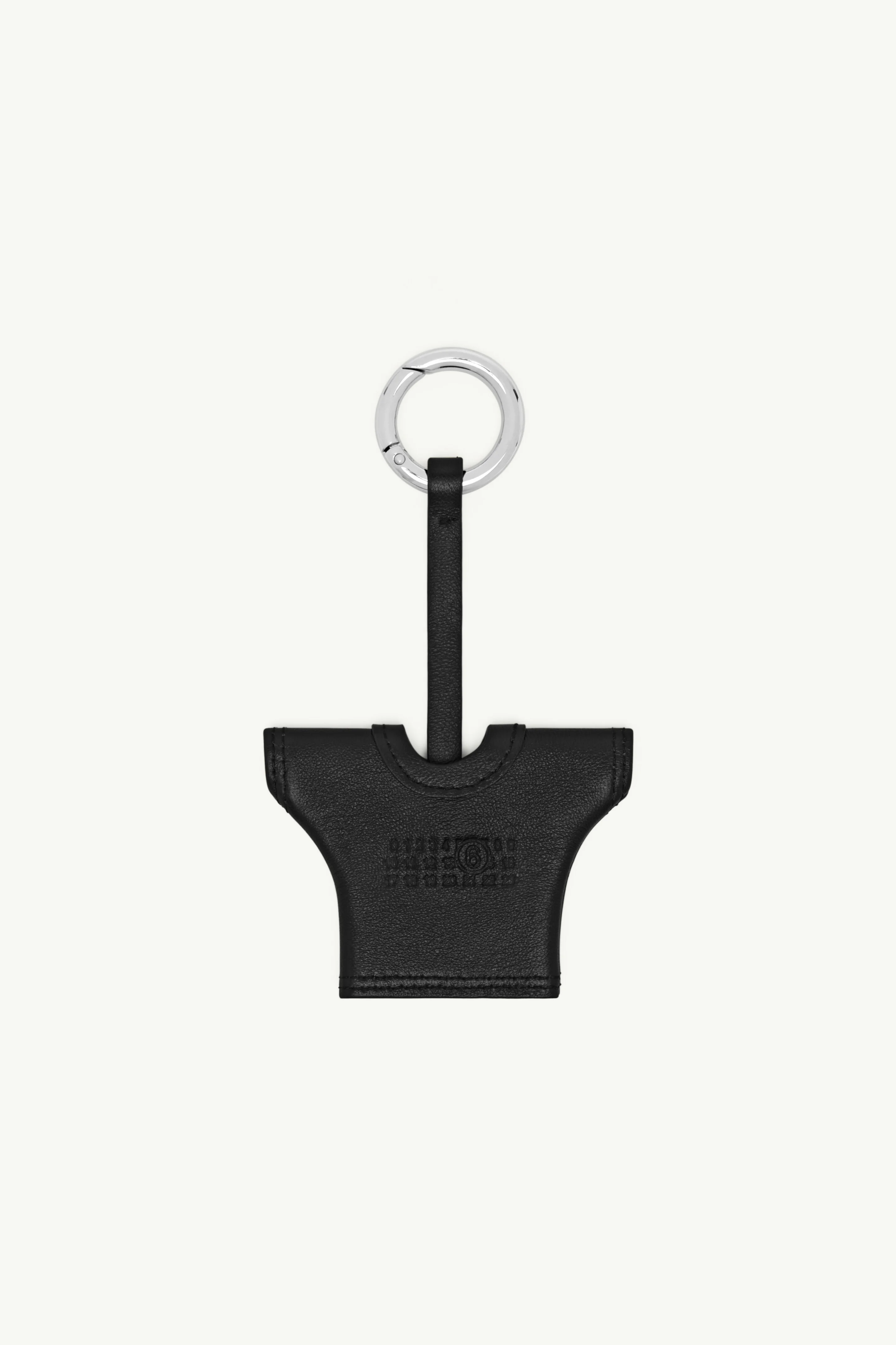 This T-shirt-shaped keychain in soft nappa leather elevates an everyday object into a refined design statement. Embossed with the Maison's numeric artwork, it creatively channels MM6’s minimalist aesthetic with a touch of playful irreverence. Product Details Item ID SA6UA0006P8335T8013 Body: 100% ovine leather Metallic parts: 100% zinc T-shirt shaped leather key ring with debossed numeric signature Double split rings at the top and bottom White stitch line at the back Made in Italy