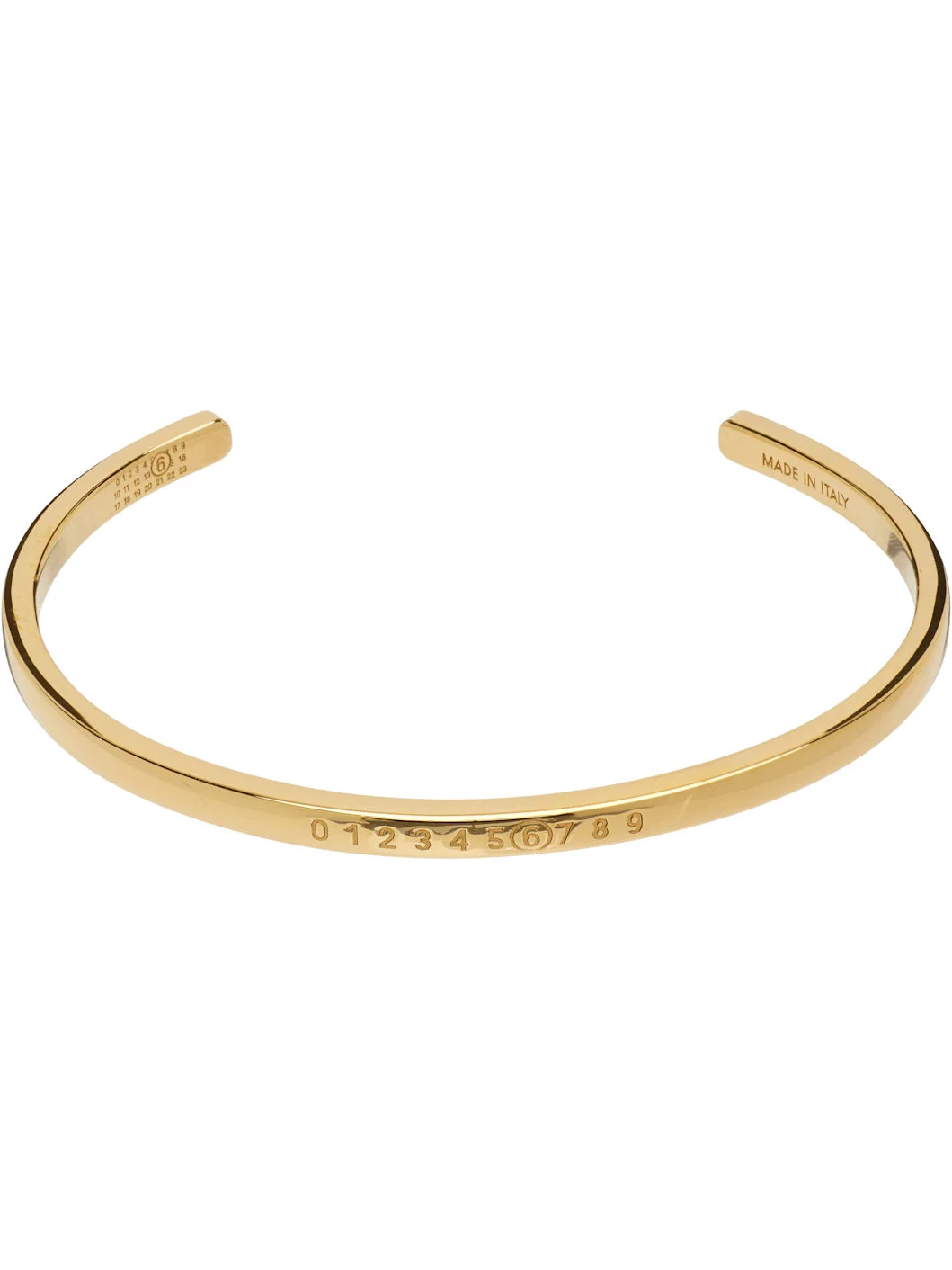 Open cuff bracelet in polished gold-tone brass. Logo engraved at face. Supplier color: Polished yellow Brass. Made in Italy 252188F020012