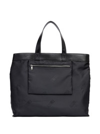 logo-printed tote bag Highlights - Black - Logo print throughout - Top handles - Zip pocket at front Imported Composition Outer: Nylon 100%, Calf Leather 100%, Polyester 100%
