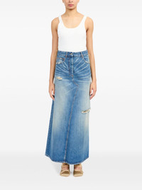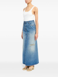 logo-patch midi skirt Highlights - Indigo blue - Cotton - Washed denim - Logo patch to the rear - Front button fastening - Belt loops - Classic five pockets - Straight hem - Mid-length Made in Italy Composition Cotton 100% SIZE & FIT Measurement HIPS 34.64 in(88 cm) LENGTH 44.09 in(112 cm) WAIST 28.34 in(72 cm)