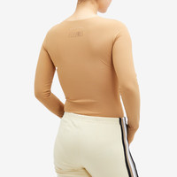 Launched in 1997, MM6 Maison Margiela has consistently showcased a pioneering point of view. With a stretch design, this bodysuit is perfect for complementing a pair of high-waisted trousers. With a snap fit fastening, a signature numeric logo is stitched in a tonal hue on the rear. - 73% Polyamide, 27% Elastane - Round Neck - Embroidered Branding