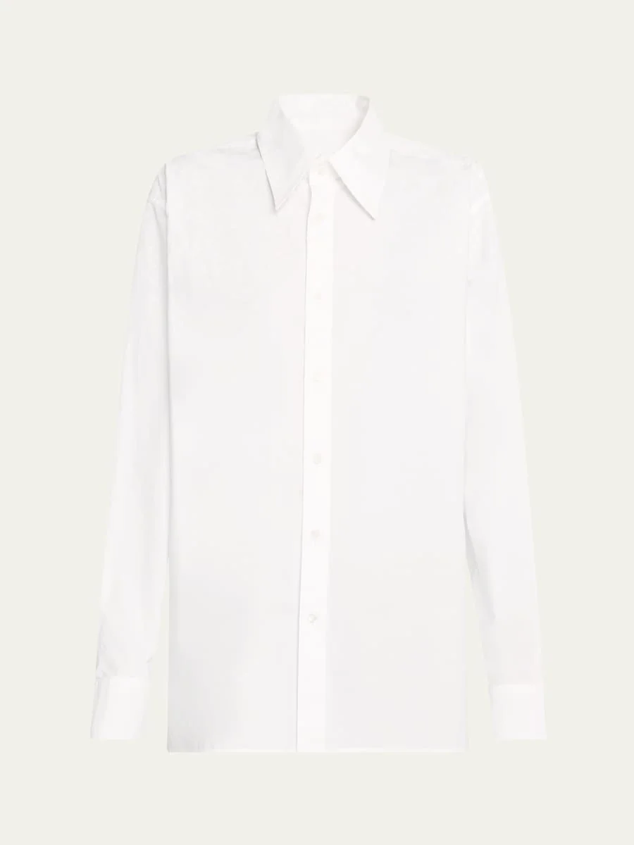Menswearinspired crisp cotton poplin shirt by MM6 Maison Margiela. Point collar Long sleeves with button cuffs Oversized fit Hem falls to the hip Buttonfront Cotton Unlined Dry clean Made in Italy