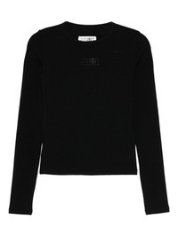 Long-sleeved Top Highlights - Black - Crew neck - Long sleeves - Logo detail - Ribbed knit - Straight hem Imported Composition Cotton 76%, Virgin Wool 19%, Elastane 5%