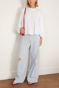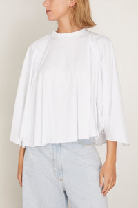 The MM6 Maison Margiela Long Sleeved Shirt in White is a long sleeve jersey t-shirt with wide flared sleeves and a-line silhouette.