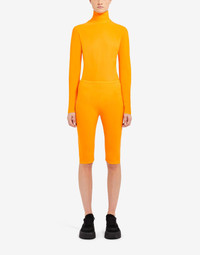 Lycra cycling shorts, cut above the knee, with a minimal Margiela 6 print and the signature MM6 stitchline at the back. Made in Italy. Item details 73% Polyamide, 27% Elastane Synthetic jersey Brand logo Solid color