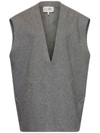 melange-effect felted vest Highlights - Heather grey - Wool blend - Felted - Melange effect - Signature single-stitch logo - V-neck - Cap sleeves - Two side welt pockets - Straight hem Made in Italy Composition Wool 70%, Polyamide 27%, Other fibres 3%