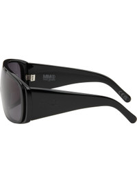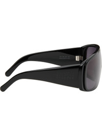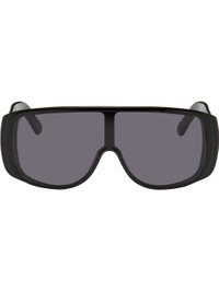 Handcrafted shield-style acetate-frame sunglasses. · Mirrored gray lens · 100% UVA/UVB protection, category 3 · Integrated nose pads · Logo engraved at temples · Includes pouch · Size: 135 Supplier color: Black Acetate. Made in Italy 252188F005000