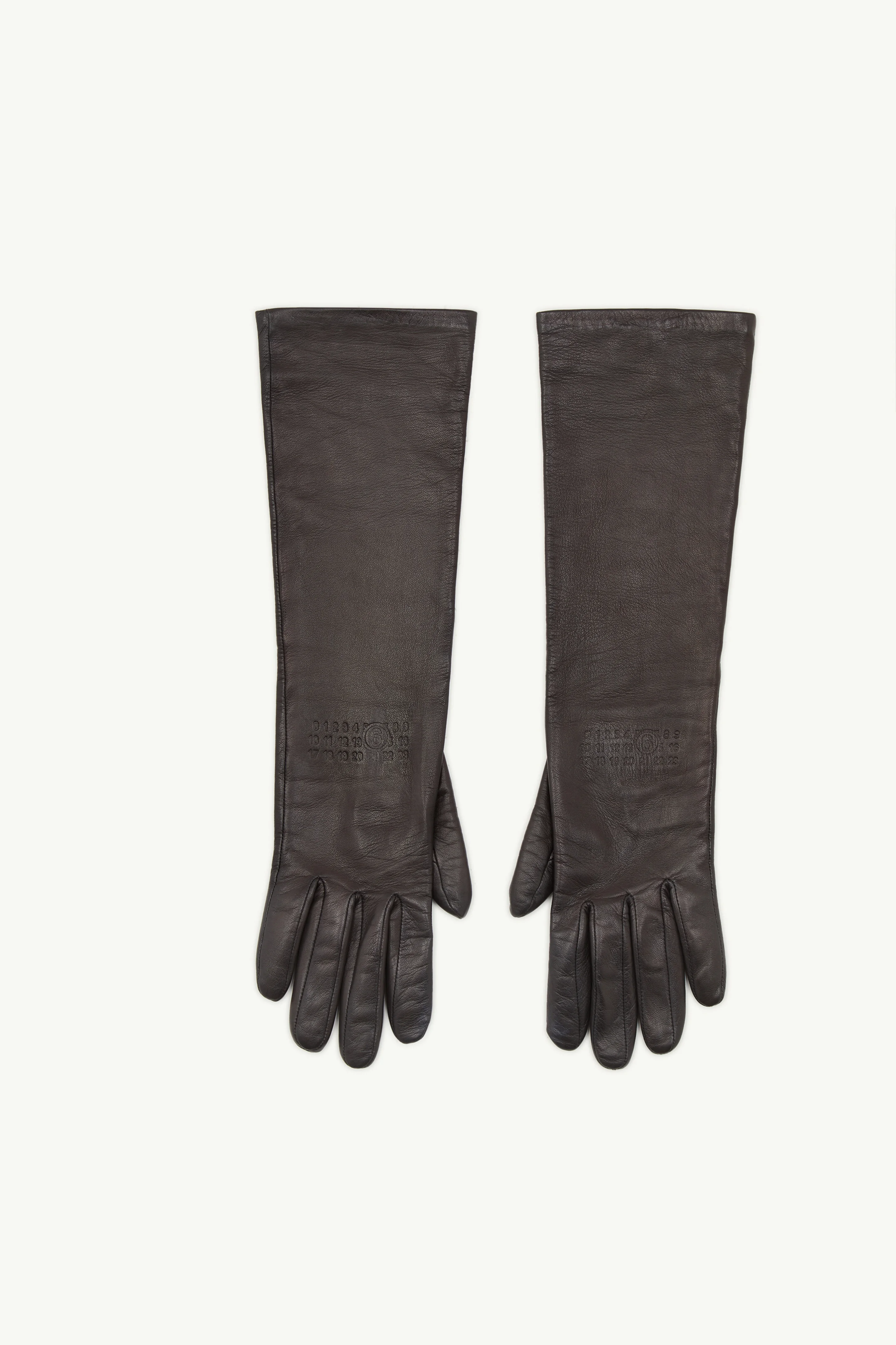 Crafted in glazed lambskin leather with a softly structured silhouette, these gloves reflect the shared precision of MM6 and Agnelle. The French glove-maker, established in 1937, brings generational expertise to this mid-length design, signed with the Maison's debossed numeric artwork. Product Details Item ID S62TS0080M07014855 Primary fabric: 100% Glazed lambskin, 100% Silk Mid-length gloves Smooth glazed finish Debossed numeric artwork at the wrist White stitch line underneath