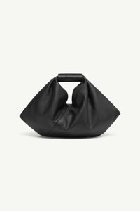 This grainy leather handbag reinterprets the Maison’s iconic design, drawing on the art of Japanese paper folding with its distinctive, triangular silhouette. Clean lines and dynamic form blend functionality with statement-making style. Featuring the MM6 numeric signature cuff and white stitch line at the back, it offers practical elements like an inside pocket without compromising its avant-garde aesthetic. Product Details Item ID SB5WD0029P7255T8013 Body: 100% calf leather Lining: 100% cotton Grainy leather finish Top handles Stitched detail at the back Snap button closure Inside logo stamping Clean with a mild leather cleanser without rubbing