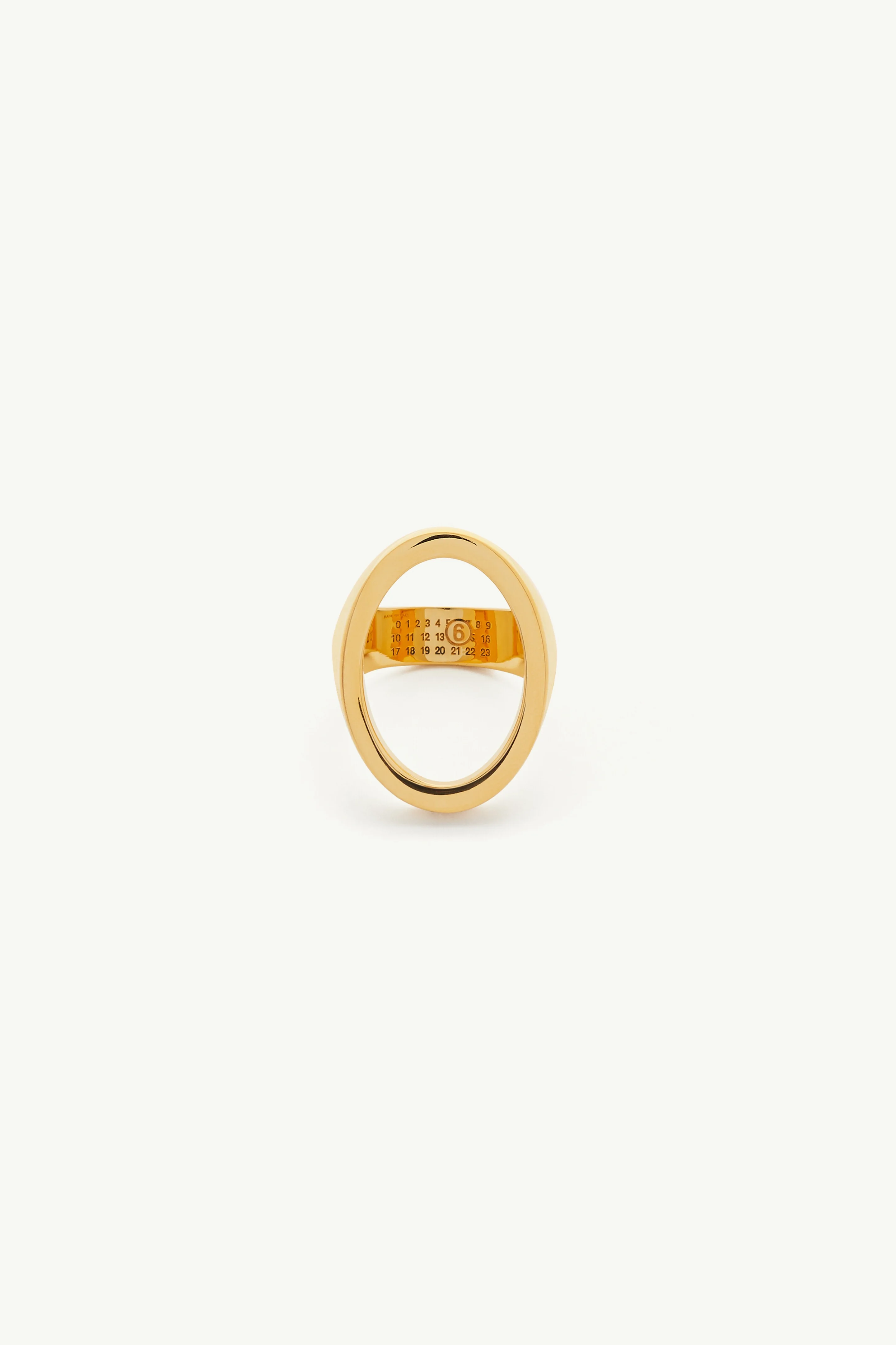 A piece defined by what is missing, this chevaliere-inspired ring removes the expected focal point, allowing the wearer’s skin to take centre stage. Set in polished brass, its absence speaks volumes, embracing MM6’s deconstructed approach to contemporary jewellery. Product Details Item ID SM7UQ0088P7355950 Primary Material: 100% Brass Chevaliere-inspired ring Open bezel detail Engraved numeric signature on the inner band Made in Italy