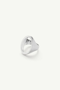 A piece defined by what is missing, this chevaliere-inspired ring removes the expected focal point, allowing the wearer’s skin to take centre stage. Set in polished brass, its absence speaks volumes, embracing MM6’s deconstructed approach to contemporary jewellery. Product Details Item ID SM7UQ0088P7355951 Primary Material: 100% Brass Chevaliere-inspired ring Open bezel detail Engraved numeric signature on the inner band Made in Italy