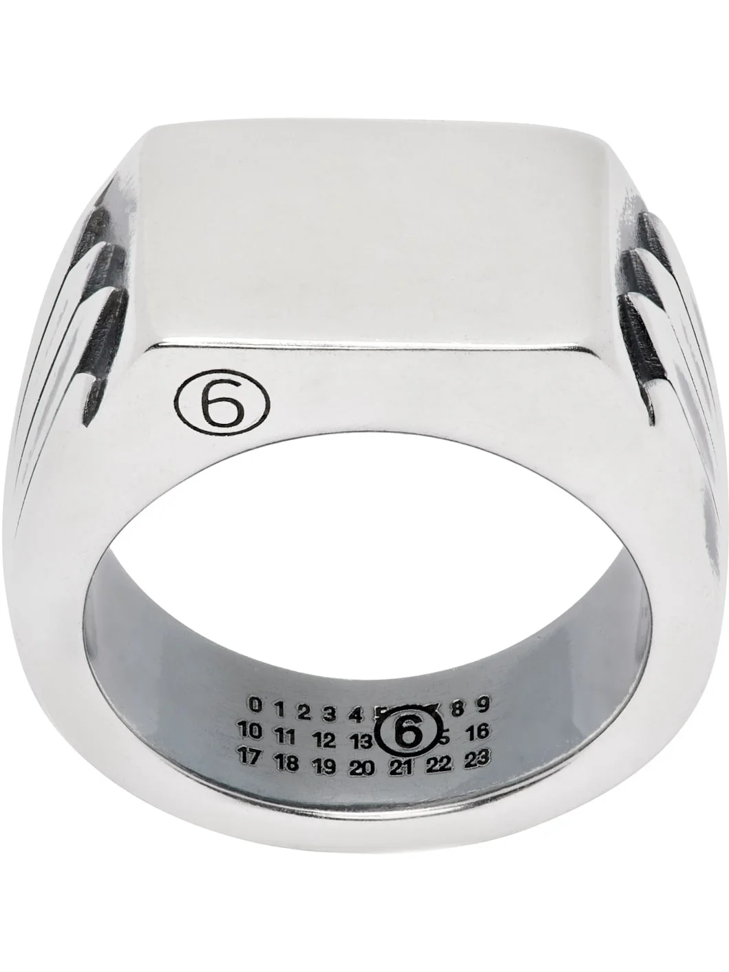 Signet ring in antiqued silver-tone brass. · Engraved detailing at sides · Logo engraved at side Supplier color: Brunito Brass. Made in Italy 252188F024016