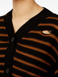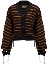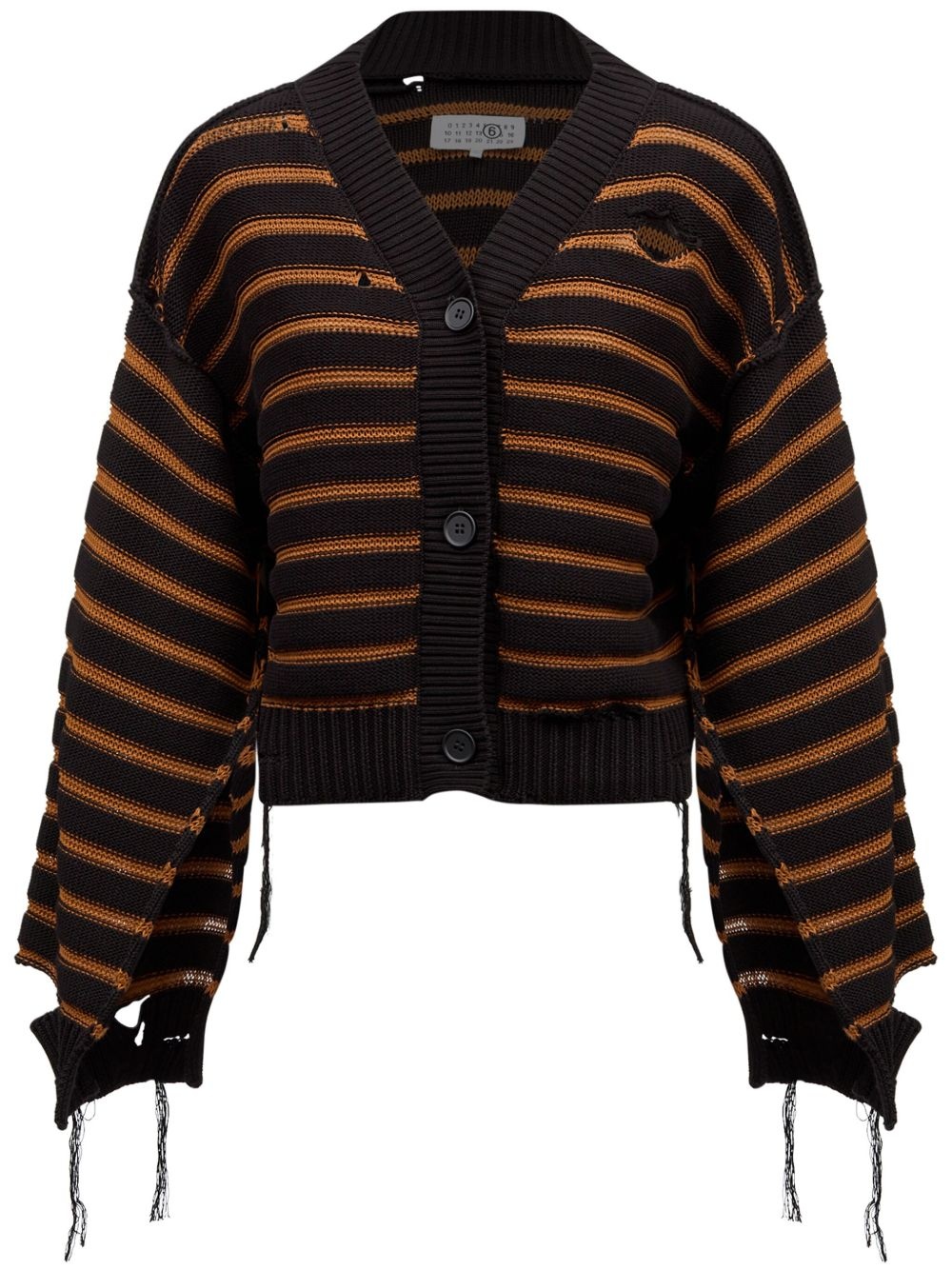 striped cotton knit cardigan Highlights - Black/brown - Cotton - Knitted construction - Vertical stripe pattern - Cape design - Front button fastening - Drop shoulder - Distressed finish Made in Italy Composition Cotton 100%