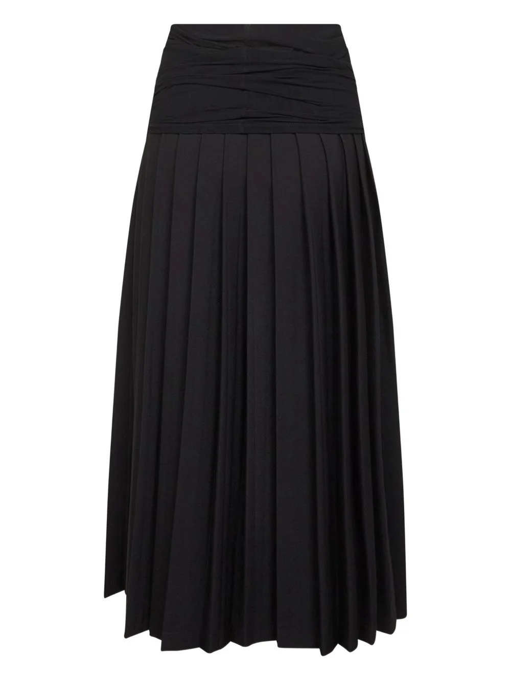 pleated tulle-panel skirt Highlights - Black - Pleated design - High waist - Gathered tulle panel - Mid length Made in Italy Composition Polyester 55%, Virgin Wool 45% Washing instructions Read Manufacturer Guidelines