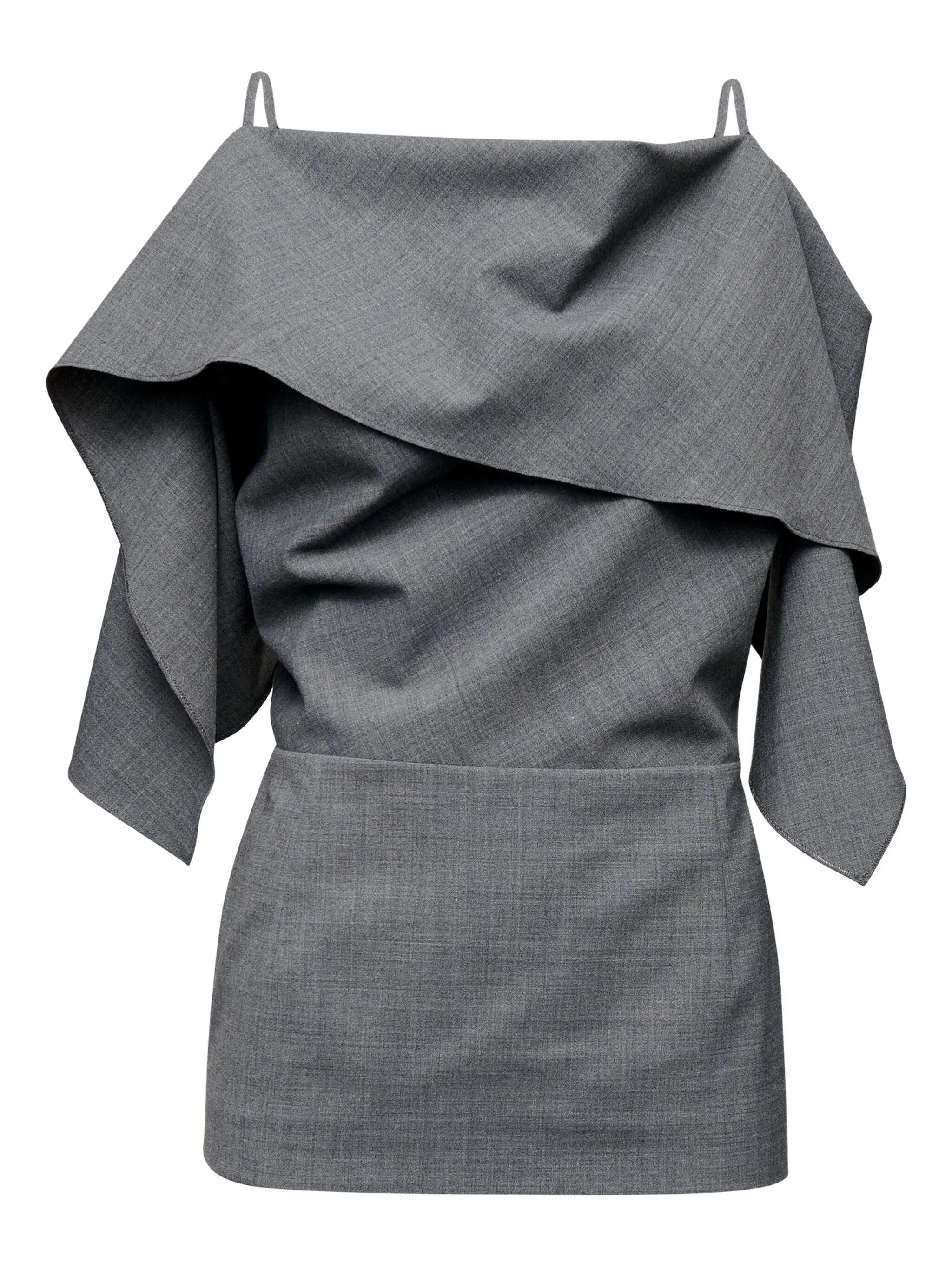 grey ruffled detail spaghetti straps zip fastening sleeveless square neck - Color: GREY - Made in: Italy - Designer Style ID: M35733 S52NC0358 860M Composition and care Polyester: 54.0%, Spandex/elastane: 2.0%, Wool: 44.0%