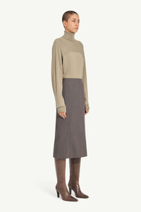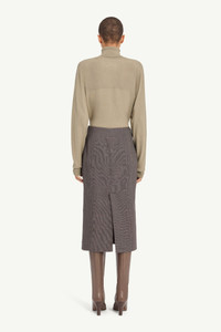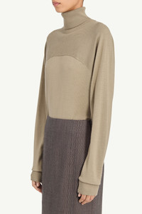 This long-sleeved bodysuit comes in a high-neck silhouette with stitched bust detailing and a smooth, compact finish. Channeling ‘80s glam through a shoulder piece lifted from the archive, it’s ready-when-worn with or without the added structure. At the back, the MM6 white stitch line underscores its identity. Product Details Item ID S62NA0082M13188114 Primary fabric: 50% Polyacrylic, 50% Virgin Wool High-neck bodysuit Removable shoulder piece Long sleeves with ribbed cuffs Stitched bust detail Snap button closure at base White stitch line at the back Made in Italy Model is 180 cm tall and wears a size M.