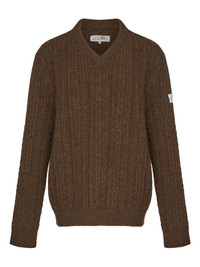 v-neck ribbed sweater Highlights - Brown - V-neck - Ribbed knit - Long sleeves - Patch detail Made in Italy Composition Wool 35%, Acrylic 35%, Polyamide 28%, Spandex/Elastane 2% Washing instructions Read Manufacturer Guidelines