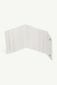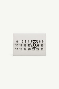 From the MM6 Spiga Capsule, this leather wallet becomes a canvas for the Maison’s numeric code. The logo is printed across its fold, split between front and back, aligning only when the piece is closed. An everyday accessory takes on a graphic gesture, balancing function with disruption. Product Details Item ID SA6UI0036P8881T1003 Body: 100% Calf Leather Inside: 100% Viscose-Rayon Trifold wallet in calf leather Four card slots Snap button closure MM6 numeric signature at the front White stitch line at the back