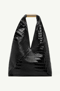 The Japanese bag in crocodile-embossed faux leather is a sculptural evolution of MM6’s most emblematic accessory. First introduced for Spring-Summer 2024, its angular folds echo the original’s origami inspiration, while the spacious silhouette offers room for everyday essentials. On the handle, the Maison's numeric signature asserts its identity. Product Details Item ID SB6WD0043P8650T8013 Primary material: 100% Calf leather Secondary material: 100% Cotton Metallic hardware Japanese Bag in crocodile-embossed faux leather Folded silhouette with angular construction Brass handle with engraved logo White stitch line at the back