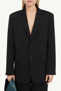 The tailored cut, padded shoulders and single-button fastening of this wool jacket demonstrate the inspiration the brand has gathered from power suiting. Crafted from a blend of virgin wool and polyester, the style also features peak lapels and a flap pocket. MM6’s discreet yet distinct signature, a horizontal line of white stitches, is also found on the back of the garment. Product Details Item ID S52BN0136M35153900 Composition: 54% polyester, 44% virgin wool, 2% elastane Lining: 100% viscose-rayon Pocket lining: 100% viscose-rayon Tailoring wool suit jacket Padded shoulder Single-breasted closure Peak lapel Flap pockets Single vent White stitch line at the back Made in Portugal Model is 5'8'' tall and wears a size 42.