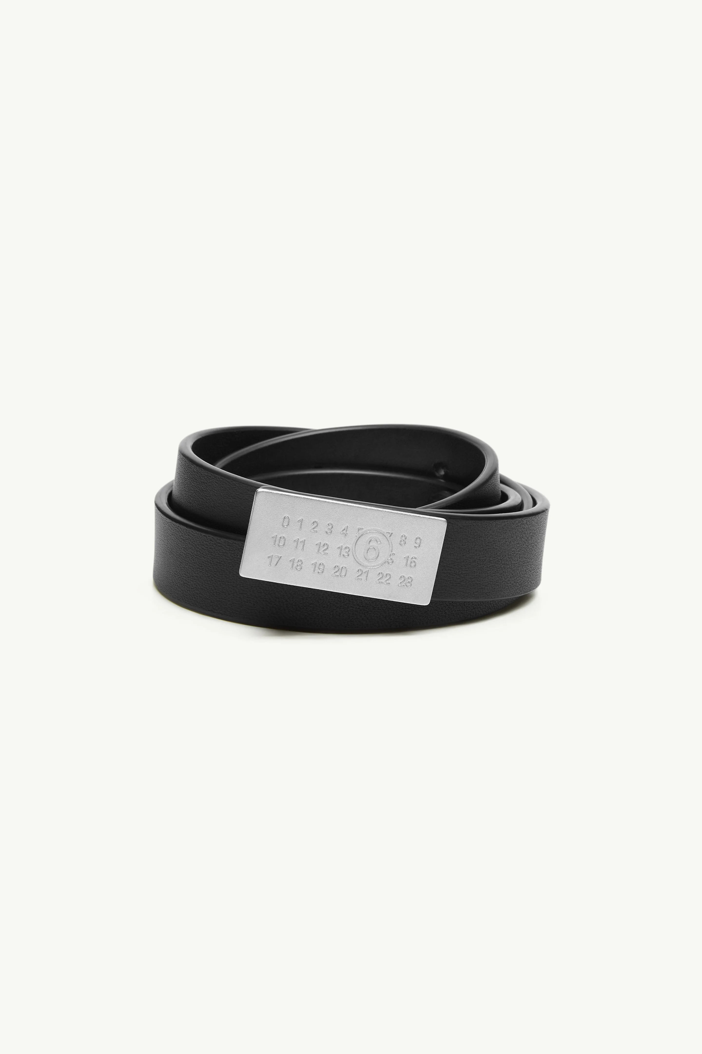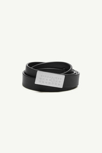 Crafted from supple calf leather, this belt balances minimalist design with a bold detail – the MM6 numeric signature embossed on a sleek metal plate. Its adjustable length offers practical versatility, making it the perfect understated statement piece for any look. Product Details Item ID SA5TP0011P7258T8013 Body: 100% calf leather Belt in soft leather MM6 numeric signature at the front on metal plate One size Made in Italy Belt length to the first hole: 68 cm Belt length to the last hole: 108 cm Clean with a gentle leather cleanser and a damp microfiber cloth