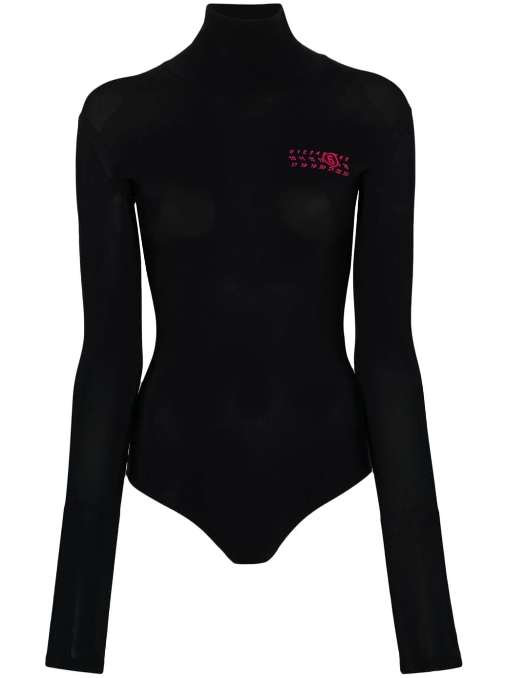 numbers-motif bodysuit Highlights - Black - Stretch-jersey - Signature numbers motif - Roll neck - Long sleeves - Concealed press-stud fastening - Unlined - Just a reminder that this piece must be tried on over your own garments. Made in Italy Composition Polyamide 75%, Elastane 25% SIZE & FIT Model measurements Height 5 ft 10 in(1.78 m) Bust/Chest 31.49 in(80 cm) Hips 37 in(94 cm) Waist 23.62 in(60 cm) FittingInformation Designed for a close fit throughout Made from a midweight stretch fabric, this piece offers elasticity and flexibility when worn This piece fits true to size – take your usual size Washing instructions Hand Wash