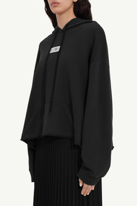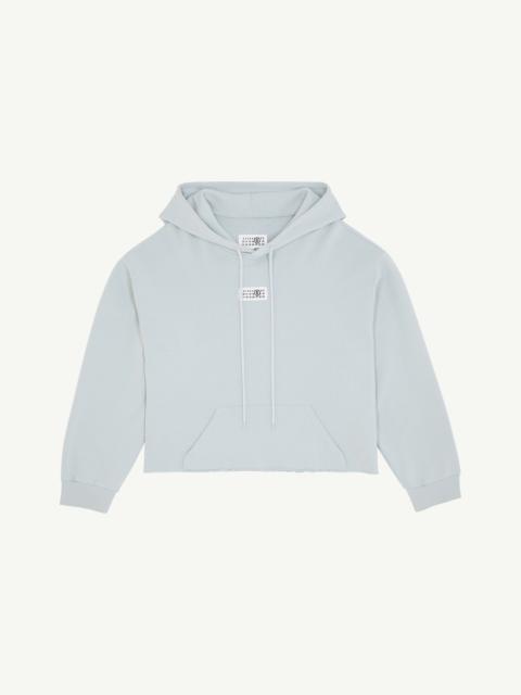 This hooded sweatshirt elevates an everyday staple with MM6's signature deconstructed aesthetic. The dropped shoulders and raw-edge hem offer a relaxed, undone silhouette, while ribbed cuffs provide a subtle contrast. With MM6’s numeric signature at the front and the iconic white stitch at the back, it distinctly captures the Maison's identity. Product Details Item ID S52GU0235M25012899 Primary fabric: 100% cotton Secondary fabric: 100% cotton Unbrushed sweat jersey hooded sweatshirt MM6 numeric signature at the front Dropped shoulder Raw-edge hem Ribbed cuffs White stitch line at the back Made in Portugal