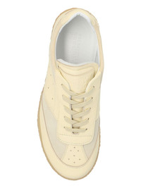 panelled low-top trainers Highlights - Beige - Calf leather - Panelled design - Front lace-up fastening - Perforated toebox - Perforated detailing - Round toe - Branded insole - Flat rubber sole Made in Italy Composition Leather 100% SIZE & FIT Measurement HEEL 0.59 in(1.5 cm)