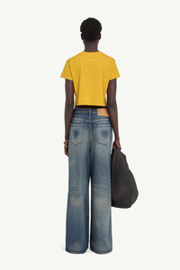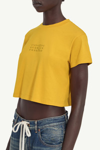 Crafted from soft cotton, this cropped T-shirt blends streetwear ease with the Maison's distinctive codes. Defined by its short hem and structured fit, it features the MM6 numeric artwork and signature white stitch line at the back. Product Details Item ID S52GC0352S24312174 Primary Fabric: 100% Cotton Application: 98% Cotton, 2% Elastane-Spandex Short-sleeved crop top in cotton jersey Crew neckline Numeric signature printed at the front White stitch line at the back Made in Portugal Model is 180 cm tall and wears a size M.