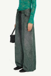 Reimagining urban aesthetics, these denim 5-pocket trousers by MM6 encompass its ethos of ready-when-worn with a casual high waist and black drawstring closure. The iconic white stitch line and numeric jacquard label at the back give a nod to the Maison's timeless signature. Product Details Item ID S62LB0178S30652962 Composition: 100% cotton Pocket lining: 65% polyester, 35% cotton Black denim 5 pocket trousers Colour treatment High waist Drawstring closure Wide leg White stitch line and MM6 numeric signature jacron label at the back Made in Italy