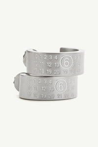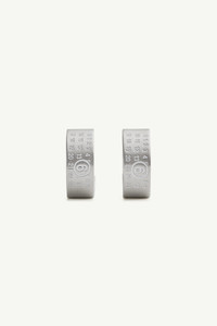 Immerse in the MM6 aesthetic with a pair of silver-finished brass earrings that creatively embody the Maison's avant-garde approach to jewellery design. Each earring features the MM6 numeric signature engraved prominently at the front, symbolising the brand's commitment to daring, unconventional elegance. Product Details Item ID SM7VG0056P7296961 Body: 100% brass Earrings in polished silver Push-back fastening Pair Engraved MM6 numeric signature at the front One size Made in Italy The item comes in a white zipped bag
