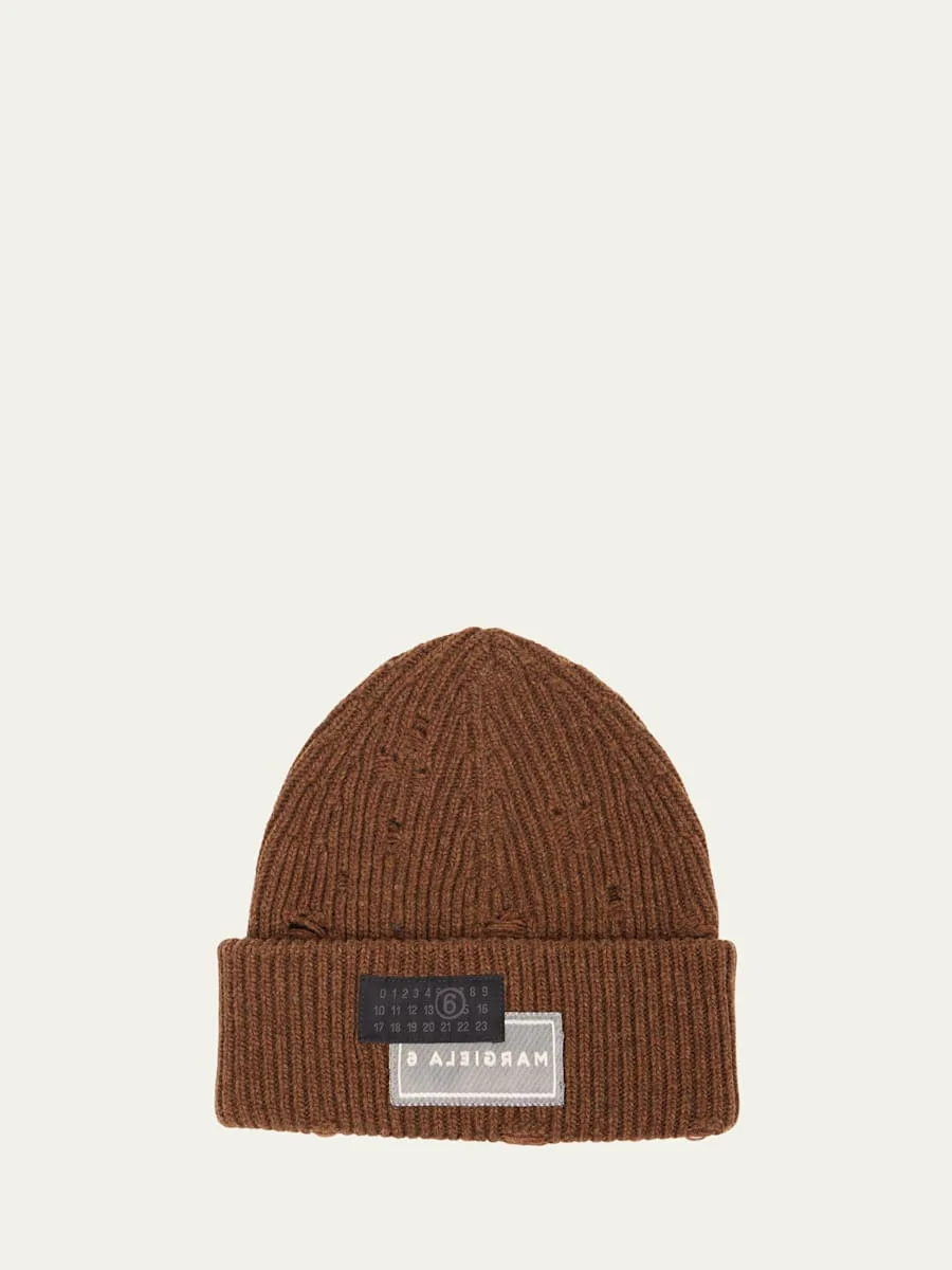 MM6 Maison Margiela beanie knitted with signature numbers motif Round crown Folded brim Wool/nylon/polyamide Dry clean Made in Italy Online Inquiries: BGS21_D5APS| Store Inquiries: #5046830