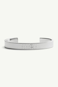 Crafted from brass, this silver-toned cuff features the MM6 numeric signature embossed at its centre and front. Product Details Item ID SM6UY0061P6469951 Body: 100% brass Width: 8 mm Engraved MM6 numeric signature at the front Made in Italy The item comes in a white zipped bag