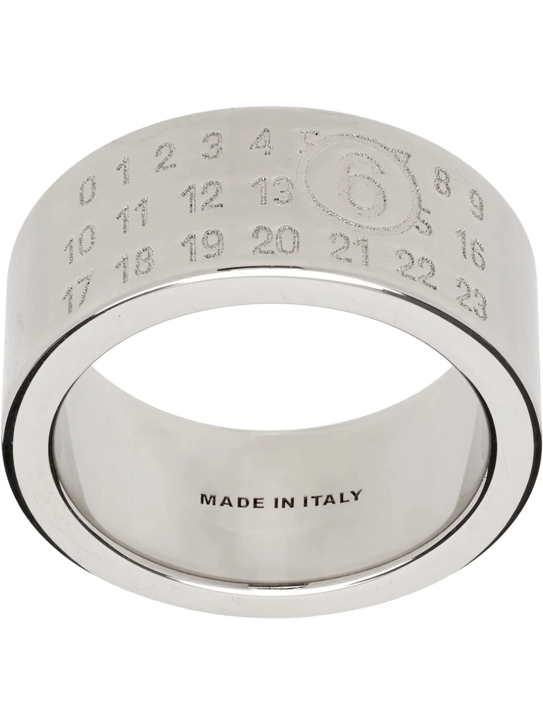 Band ring in polished silver-tone brass. Logo engraved at face. Supplier color: Palladio polished Brass. Made in Italy 252188F024013