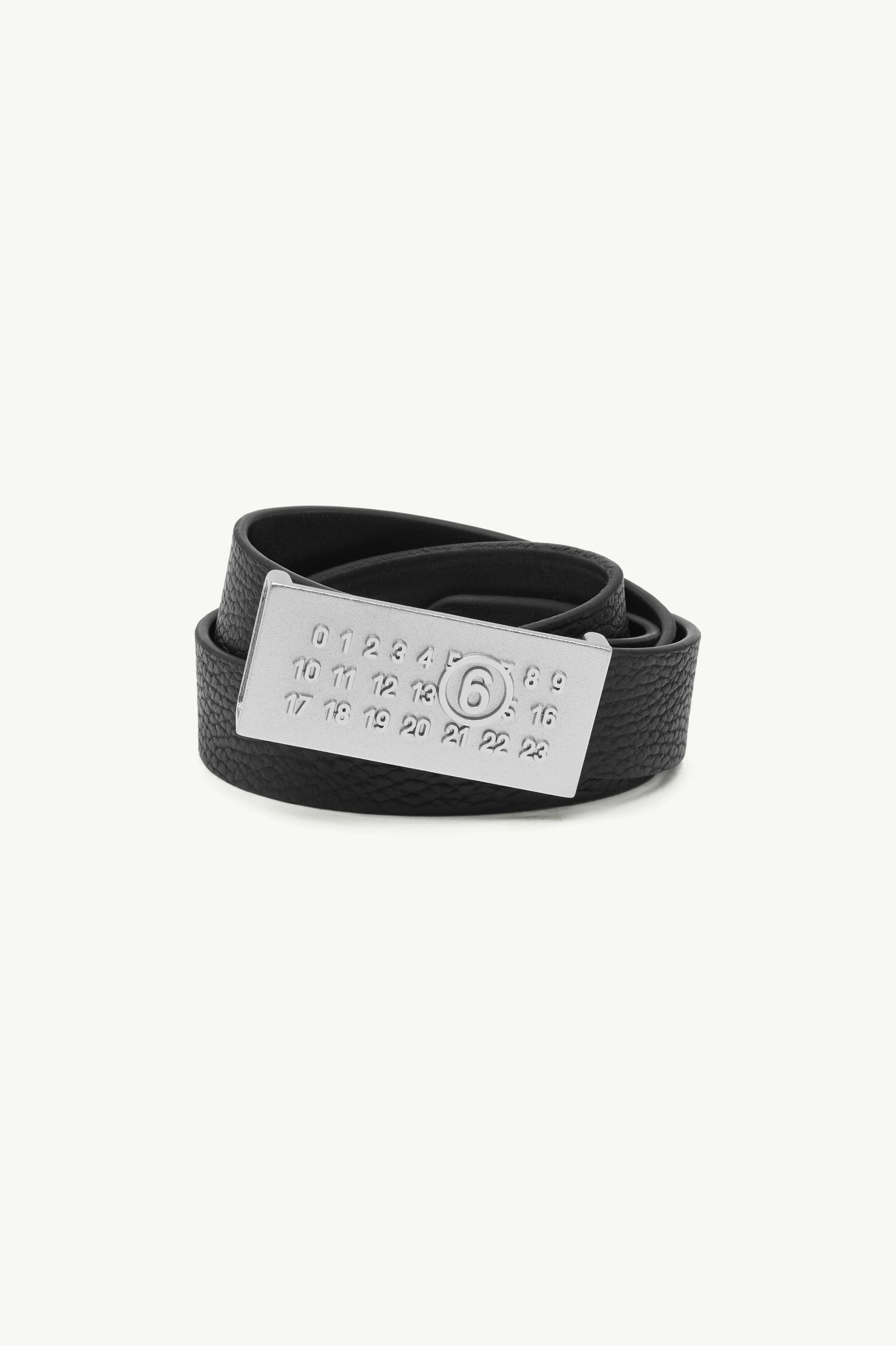Grainy leather lends texture to this slim belt, fastened with a rectangular metallic plaque engraved with the Maison’s numeric artwork. Adjustable in fit, it brings understated refinement to everyday wear. Product Details Item ID SA6TP0010P8883T8013 Body: 100% calf leather Inside: 100% calf leather Metallic parts: 100% zama Adria grainy leather Rectangular metallic buckle with embossed numbering Adjustable fit with multiple holes Made in Italy