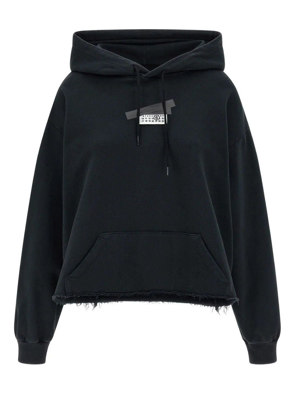 gauze frayed hoodie Highlights - Black - Cotton - Numeric signature mm6 label - Kangaroo pocket - Long cuffed sleeves - Frayed raw cut hem Made in Italy Composition Cotton 100% Washing instructions Read Manufacturer Guidelines