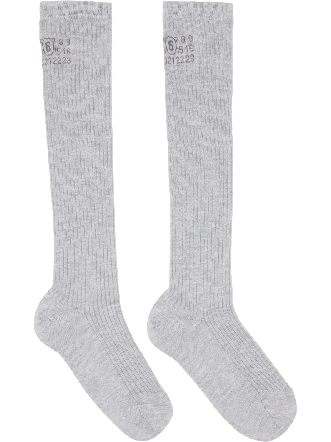 Pair of rib-knit stretch cotton-blend socks. · Mid-calf · Jacquard logo at back collar Supplier color: Light Grey 80% cotton, 15% nylon, 5% elastane. Made in Italy 261188F076001