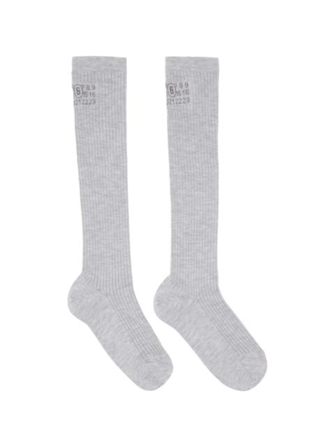 Pair of knee-high rib-knit stretch cotton-blend socks. Jacquard logo at cuff. Supplier color: Adobe Brown 80% cotton, 15% polyamide, 5% elastane. Made in Italy 261188F076003