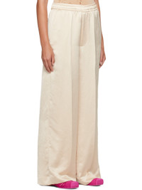 Crinkled polyester satin trousers. · Concealed drawstring at elasticized waistband · Four-pocket styling · Zip-fly · Central creases at front and back · White stitching at back Supplier color: Off white