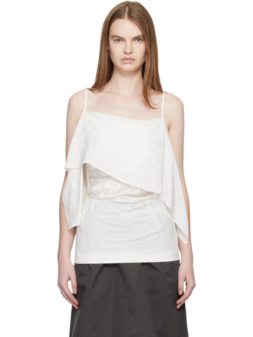 Satin camisole. · Alternate function as midi skirt · Jacquard logo pattern throughout · Layered and asymmetrical construction · Adjustable spaghetti straps · Darts at waist · Concealed zip closure at low back Supplier color: Off White 58% acetate, 42% viscose. Made in Italy 261188F111000