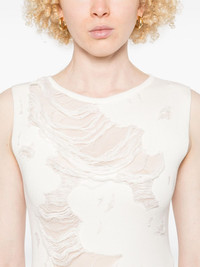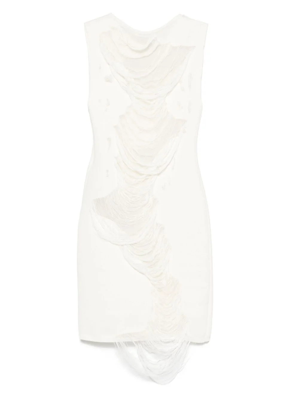 distressed mini dress Highlights - White - Crew neck - Sleeveless - Semi-sheer panels - Signature single-stitch logo Made in Italy Composition Cotton 97%, Elastane 3% SIZE & FIT Model measurements Height 5 ft 9 in(1.75 m) Bust/Chest 34.64 in(88 cm) Hips 36.61 in(93 cm) Waist 26.37 in(67 cm) FittingInformation Designed for a close fit throughout Made with a midweight knit, this piece offers some stretch